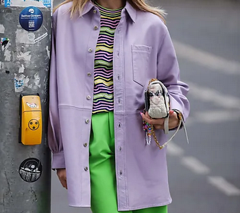 Tandis qu’habituellement le lilas fait plutôt des ravages en saison printanière, cette année le lilas s’installe en hiver. Contrairement à la fluidité et la légèreté qu’elle incarne en printemps, elle est portée en manteau et en veste à effet matelassé. Alors que le look mono-chromique n’est plus en vogue, avec cette teinte, elle semble vouloir se relancer.
